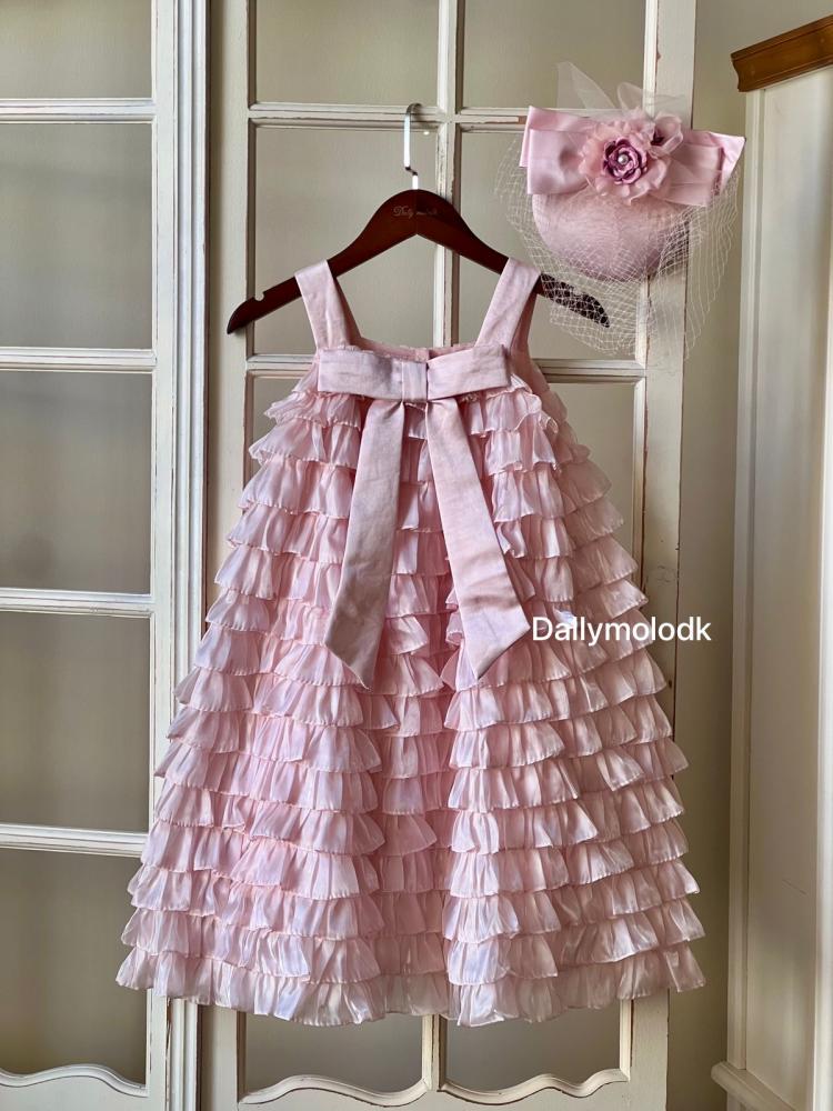 فستان وردي 2-10 سنوات بدون القبعه