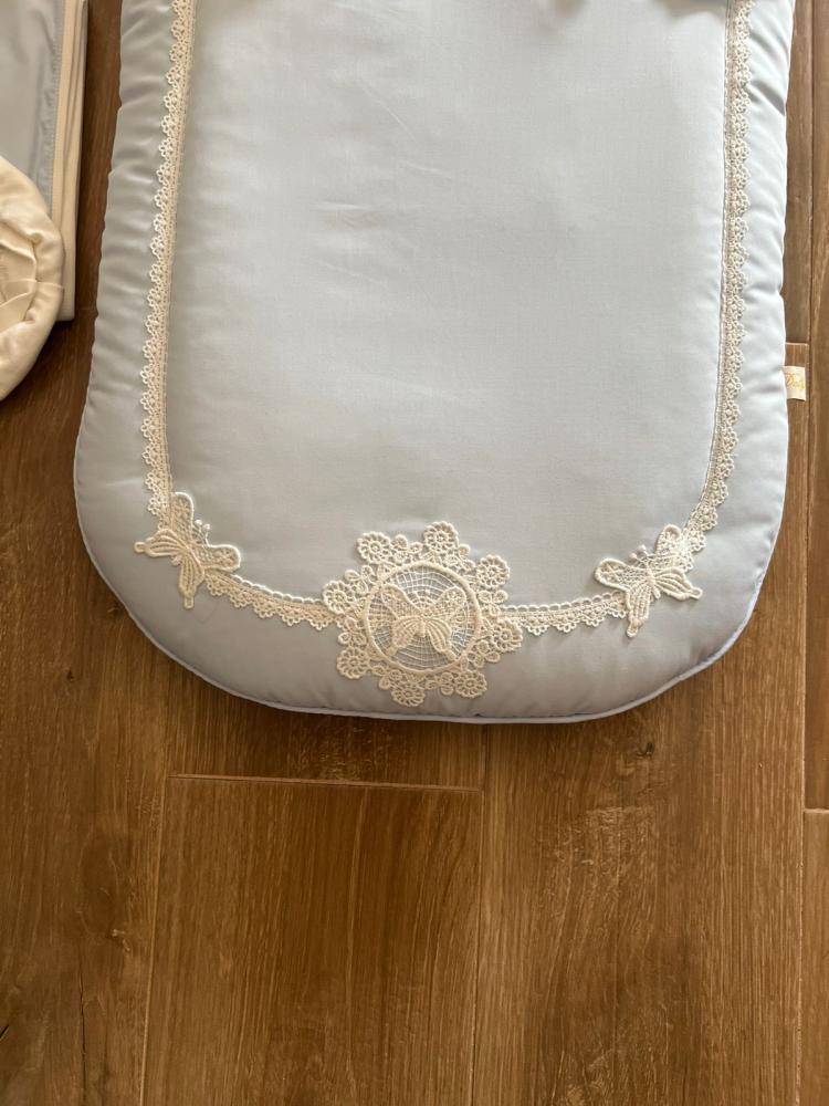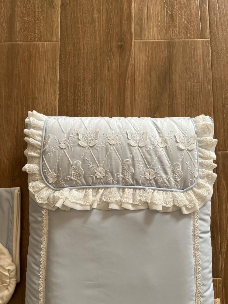 مفرش أزرق مع لفة والقبعة