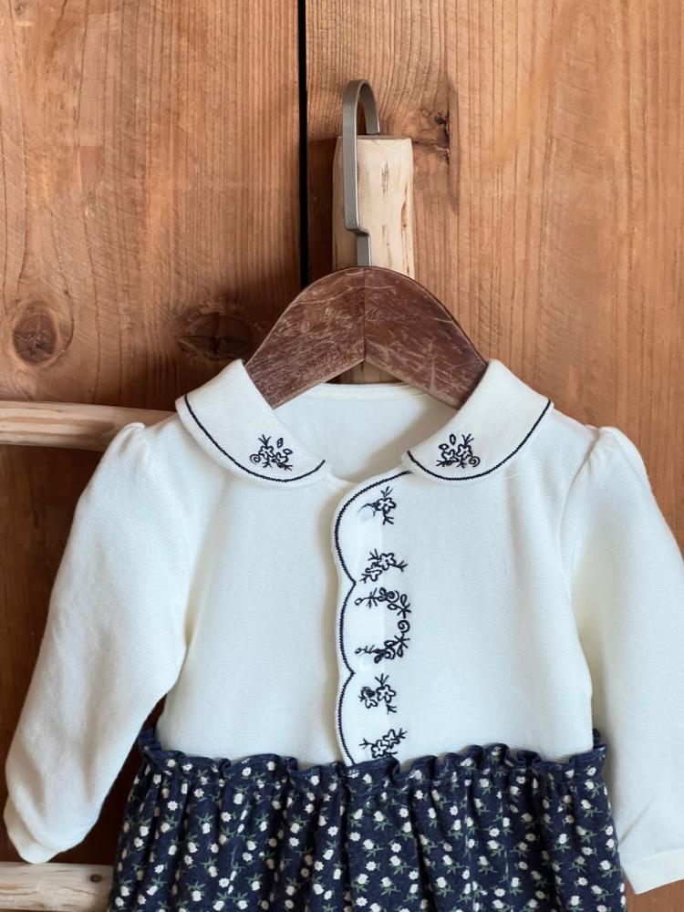 فستان ازرق من 0_3 الى 9_12 مع القبعة الفرنسية ومن 1 الى 5 سنوات بدون القبعة