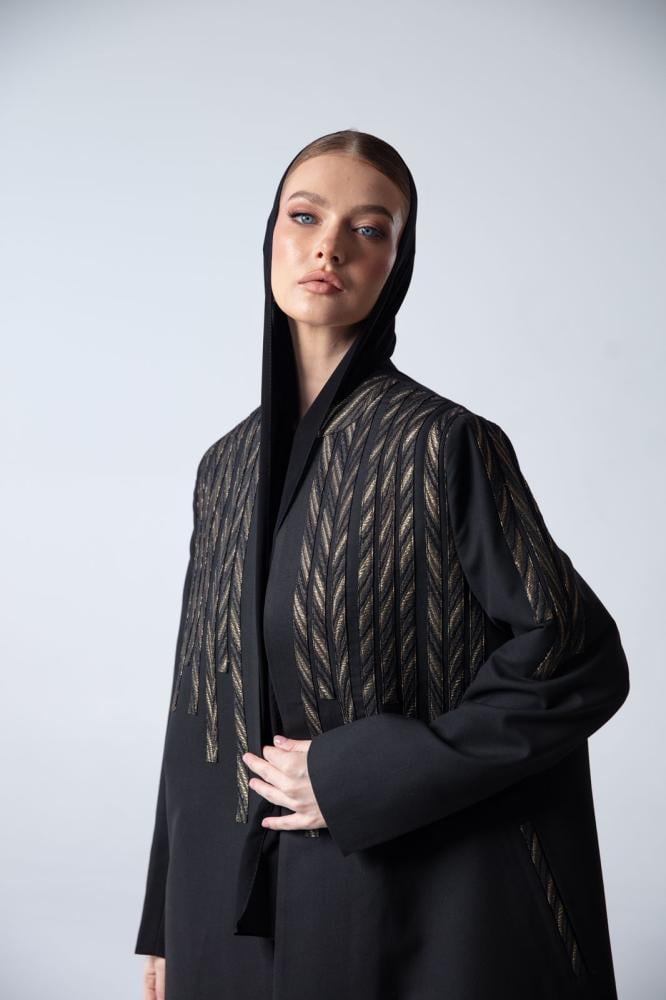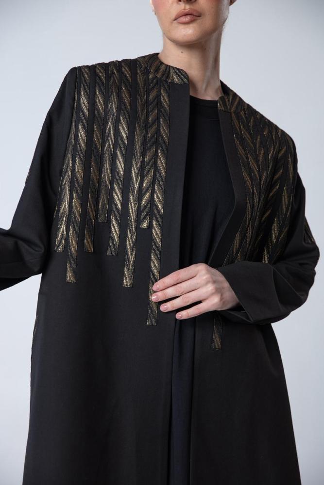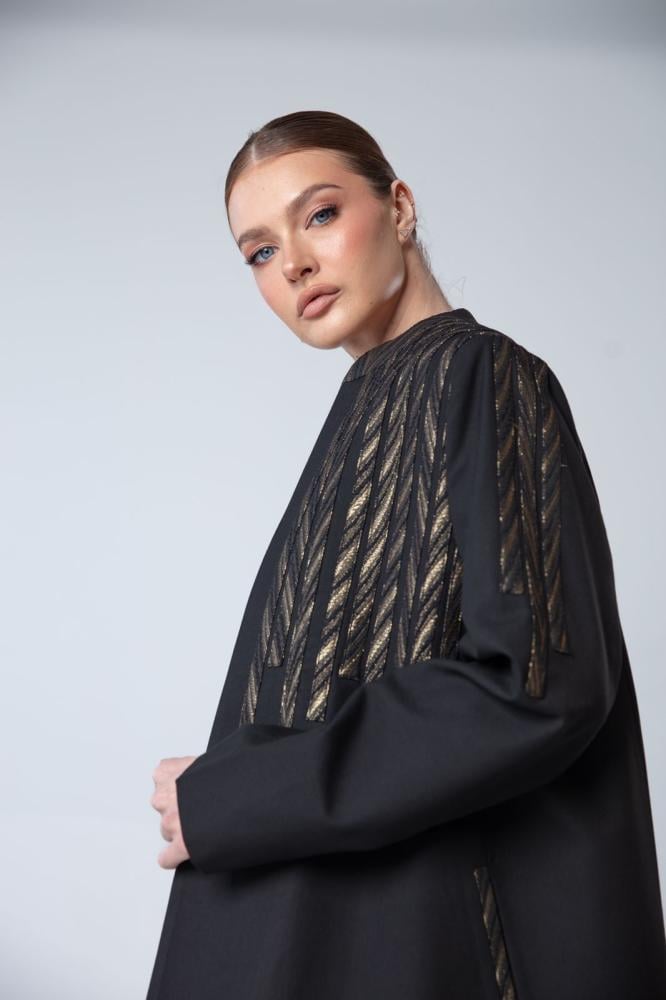 مع طرحة لون اسود سادة بخط فالعرض نفس قماش الذهبي