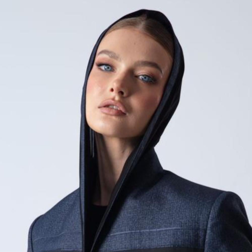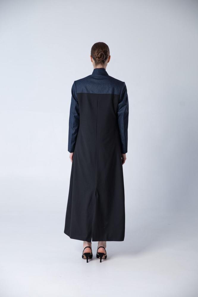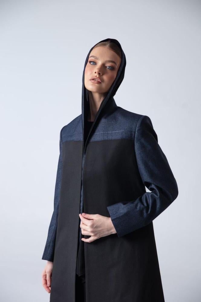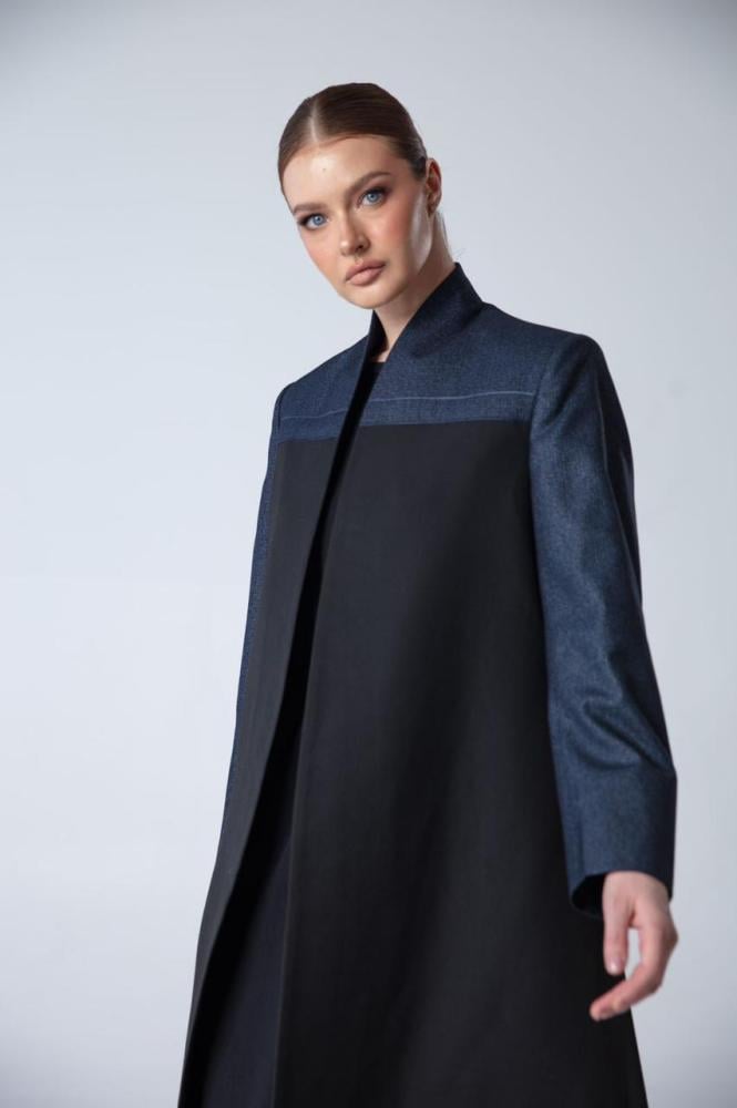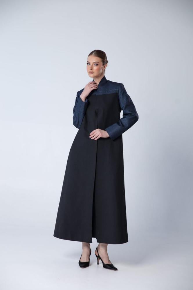 مع طرحة اسود سادة مع خط فالعرض مثل القماش الكحلي