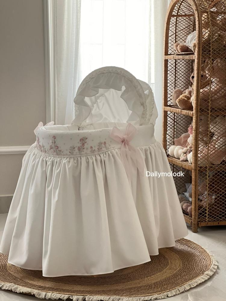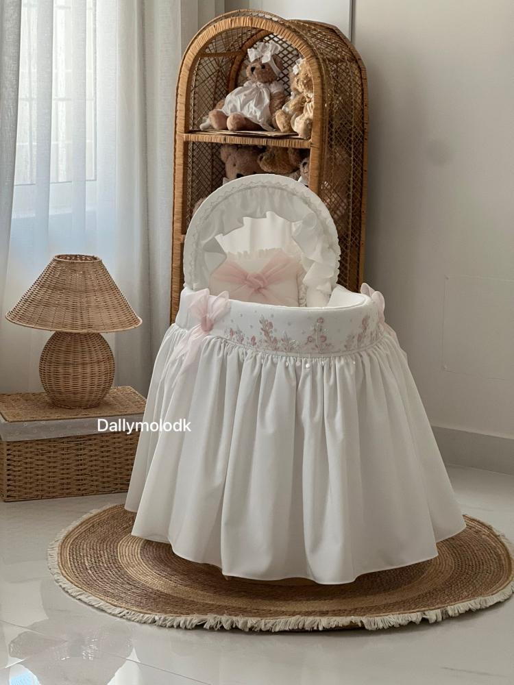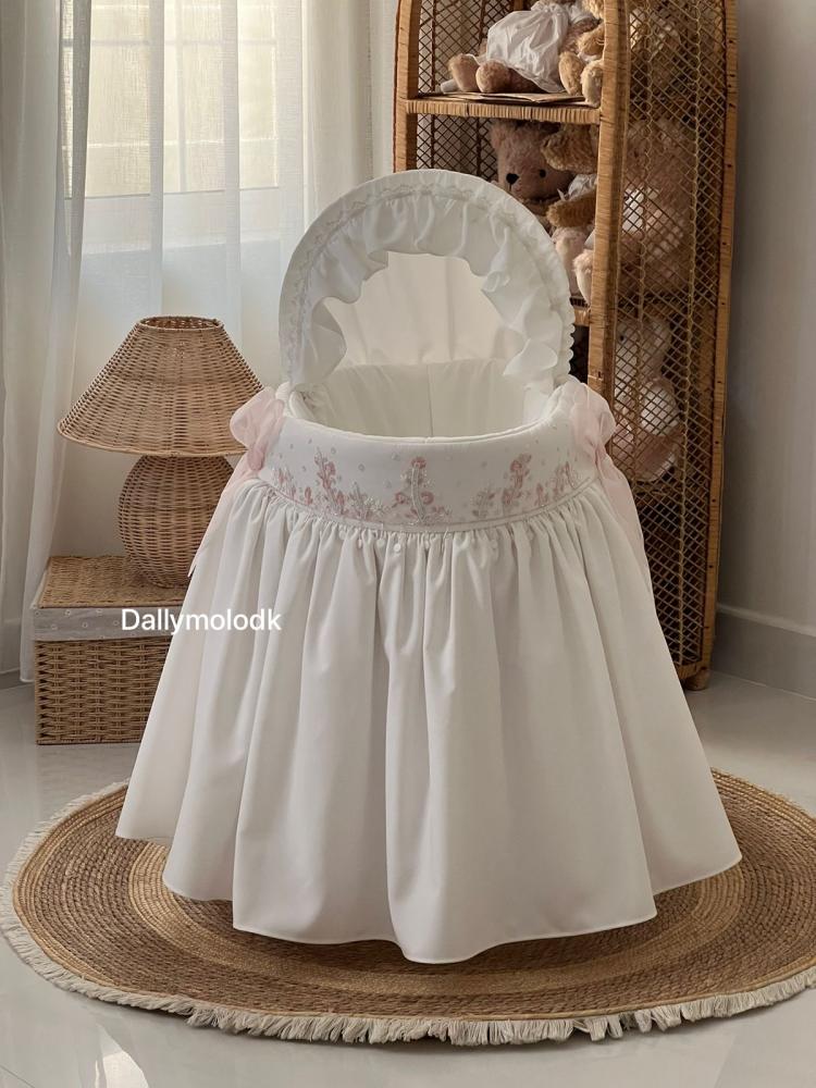 بناتيه لونها اوف وايت والشك لون وردي مع لؤلؤ و اوف وايت