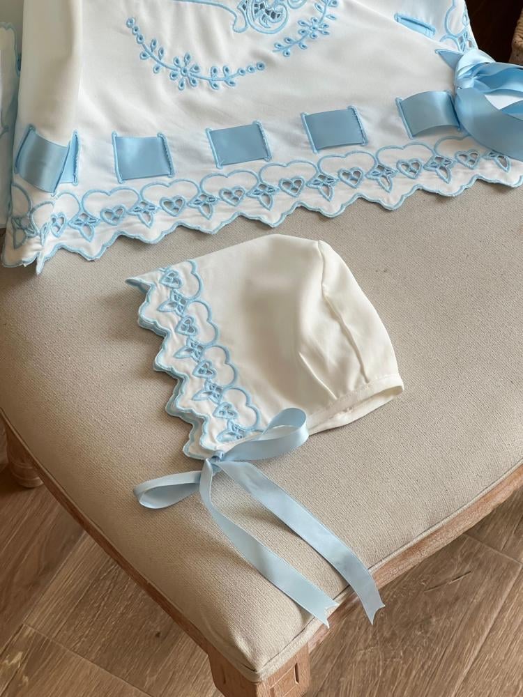 فستان 0-3 الى 6-9 مع القبعه الفرنسيه /من 9-12 الى سنتين بدون القبعه مع